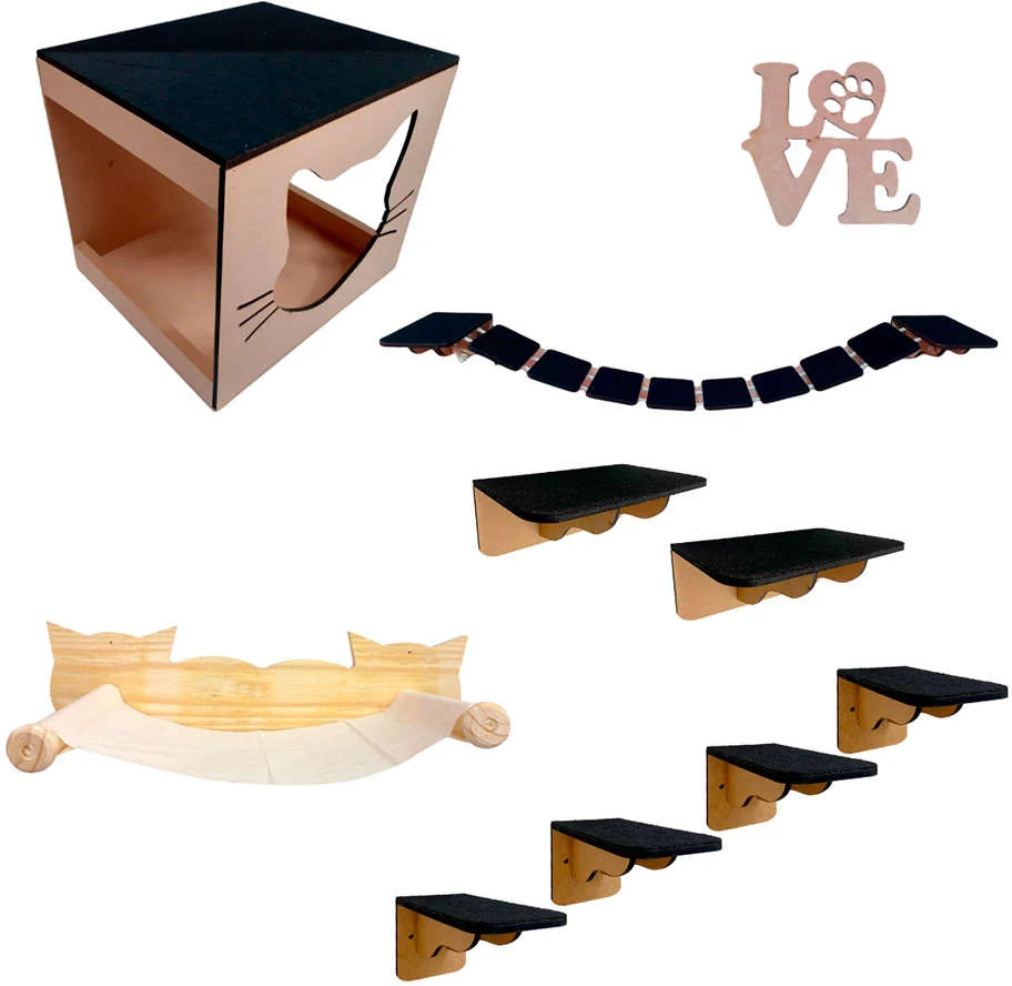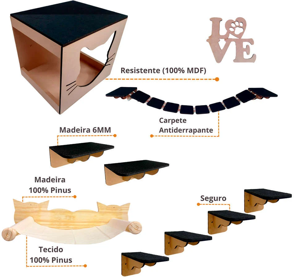 O Kit Playground com Rede para Gatos foi desenvolvido para proporcionar atividades físicas, evitando o stress e preservando seus móveis.Tem um design bonito que pode situar-se em qualquer lugar da sua casa. Este playground proporciona horas de muita diversão com seu felino.