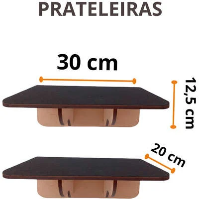 Prateleiras: Altura: 12,5 cm Largura: 20 cm Comprimento: 30 cm