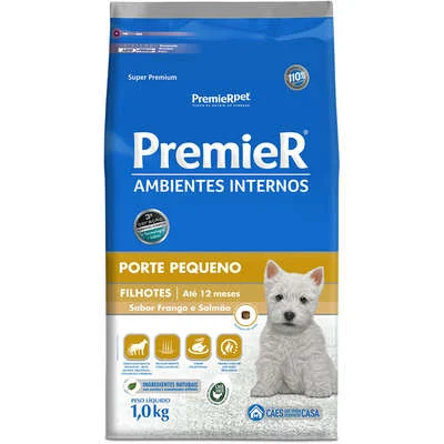 Ração Premier Pet Ambientes Internos Cães Filhotes Frango e Salmão